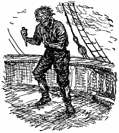 Der Alte geriet in entsetzliche Wut. Er sprang auf, öffnete sein Matrosenschnappmesser, wog es auf der flachen Hand und drohte, den Doktor damit an die Wand zu spießen.