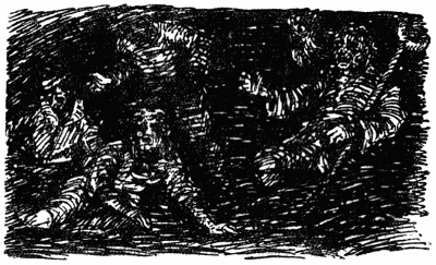 „Na, wer denn sonst?“ erwiderte der andere behaglich. „Natürlich, der schwarze Hund, wie er leibt und lebt, kommt seinen alten Schiffskameraden im ‚Admiral Benbow‘ besuchen. Ah, Bill, Bill, wir haben Zeiten erlebt, wir zwei, seit damals, als ich die[S. 22] zwei Klauen da verlor.“ Und dabei hielt er seine verstümmelte Hand in die Höhe.