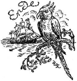 Und als ich ihm den Felsen wies und meinte, daß der Kapitän wohl bald zurückkommen würde, und ein paar weitere Fragen beantwortete, da meinte er: „Ach, Söhnchen, mein Maat Bill wird sich freuen wie über einen guten Trunk!“