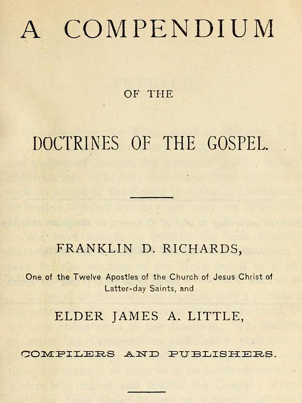 On most of the subjects treated, only a portion of the passages that refer to them have been cited, but we have endeavored to use the best. We designed to make the Compendium sufficiently elaborate to give it a wide range of usefulness, and, at the same time, not make it so large as to be burdensome to the Elders who travel and preach the Gospel. Practically, we have aimed to get up a book that would contain a great amount of information for its bulk.