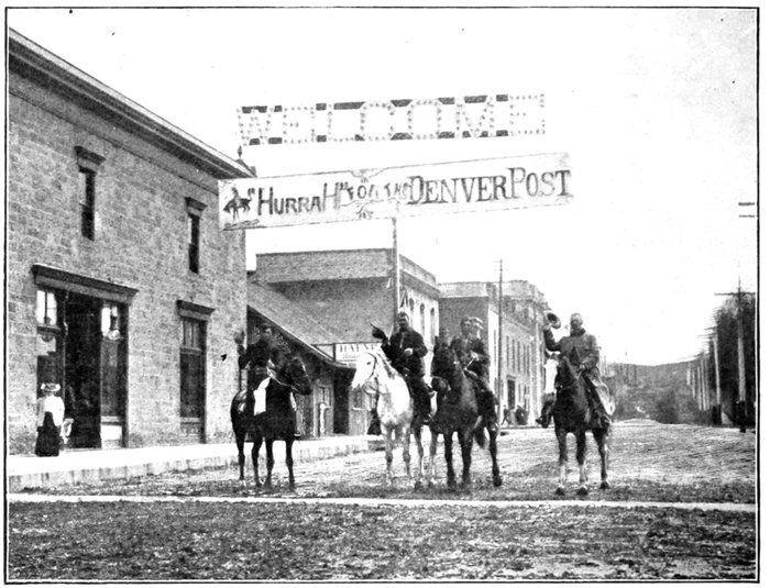 The little town of Evanston was hugely excited, and made a carnival out of the event. There was a big "barbecue" the day before the start, with races, bull-riding, a parade, and sundry other attractions, and the town was noisy with the whoops of the gay young fellows who expected to start out next day on their long, hard trip "down to Denver."