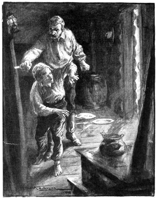 I felt that I had had enough of it all; a three-mile steeplechase is no joke for a youngster, and it was my first race. Lean, I knew, was a very bad man, and would not hesitate to settle me. So, determined to get my ordeal over, I plied my whip, and we literally flew. Pawnbroker, however, being the stronger horse, gained on me every stride in the sand, and it was with a gasp of terror that I presently saw his tan muzzle at my stirrup. "Barmaid! Barmaid!" I cried, as with tiring arm I coiled the whalebone round her flanks, but still that brown head and red, expanded nostril crept along her side. Then I felt a hand snatch at my shoulder. Grasping the rolled blanket on my saddle with one hand, I turned and lashed fiercely at my opponent's face.