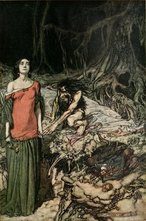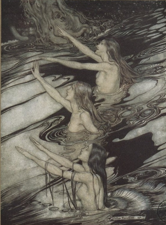 The Rhine-Maidens obtain possession of the ring and bear it off in triumph. See p. 182.