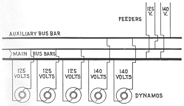 Parallel System.—Parallel or multiple systems are usually more complicated than series systems, but since the voltage can be maintained nearly constant by various methods, practically all incandescent lamps, electric motors, and a large proportion of arc lamps are supplied by parallel systems. 700
