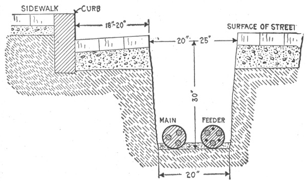 Feeders (feeding cables or conductors) are run from the source of supply to the distributing centers, and, as these feeders are in many cases of considerable length, a substantial loss of pressure generally occurs in them. The pressure at the source of supply, however, is so regulated as to compensate for the drop in the feeders, and the pressure at the distributing centers is thus kept constant; or the same result is obtained by the use of regulating devices in the feeders. The essential condition in most systems is that the pressure at the distributing centers shall be kept practically constant, irrespective of the load.