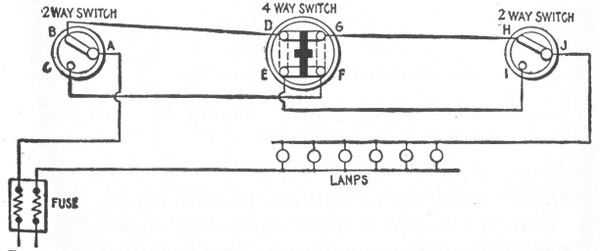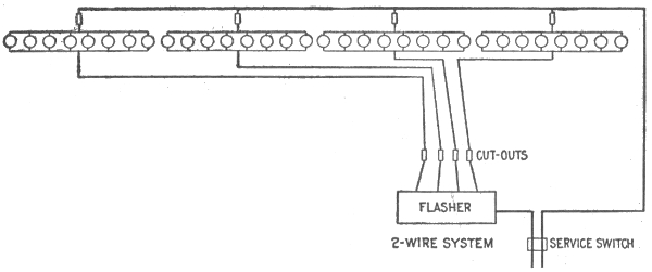 Ans. Since the total voltage of the system is equal to the sum of the volts consumed in all of the lamps, it is high enough to be dangerous to personal safety. 699