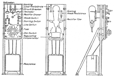 A wire capable of carrying a current of 10 amperes at 20 volts, can carry 10 amperes at 20,000 volts or any other voltage. Therefore, since the amount of electric energy or power transmitted through a conductor is equal to the amperes multiplied by the volts, it is clear that by increasing the voltage, the power transmitting capacity of a current can be almost indefinitely increased without increasing the 705 size of the conducting wire. This is the reason why considerations of economy dictate the use of the highest voltages possible in long distance transmissions. The voltage of the current is determined, however, by the requirements of the apparatus to be operated.