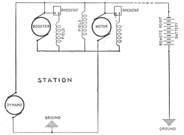 Fig. 783.—Series system of distribution. This is a constant current system, so called because the current remains practically constant. It is used chiefly for arc lighting.