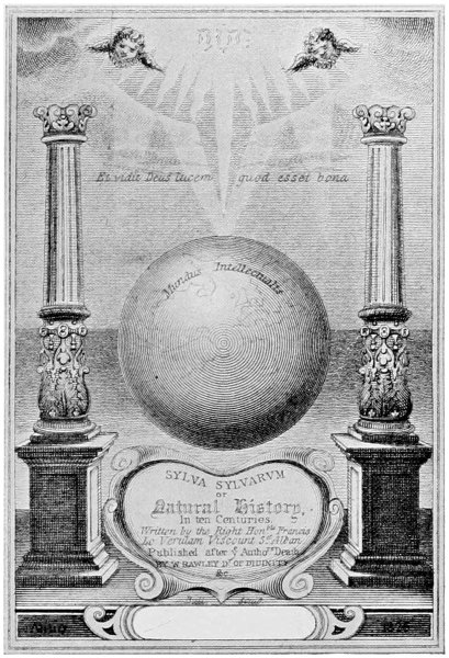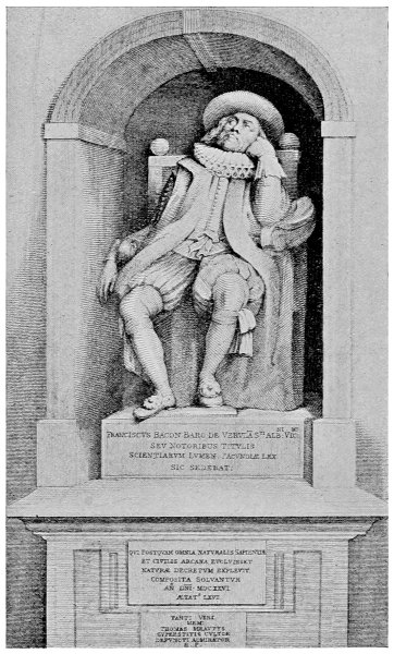 Concerning the illustrations, I may be allowed to say a few explanatory words. The two photogravure reproductions are taken respectively from a miniature by Peterviii Oliver, belonging to the Duke of Buccleuch, and from a very rare print of Bacon. The print from Vansomer’s painting, the picture of Bacon’s monument, and the portraits of Sir Nicholas Bacon, Sir Nathaniel Bacon, the Earl of Essex and Queen Elizabeth, and the views of Stratford-on-Avon and Gorhambury will, I trust, be found of general interest. The facsimile pages from “Sylva Sylvarum” and the “Novum Organum,” with their allegorical devises and fine workmanship, illustrate the contrast between the manner in which the works of Bacon and those of Shakespeare were given to the world. The portraits of Shakespeare contained here are well known to students. The reproduction of the bust will be familiar to all visitors to Stratford, the “Droeshout” Engraving is the picture which forms the frontispiece to the First Folio, and the original of the Chandos portrait is now in the National Portrait Gallery.