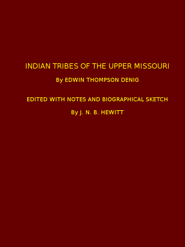 In this summary report to Governor Stevens Mr. Denig has succinctly embodied in large measure the culture, the activities, the customs, and the beliefs of the native tribes who occupied the upper Missouri River 75 years ago, more than 75 per cent of which has been lost beyond recovery by contact with the white man. For more than 40 years the native life with which Mr. Denig was in contact has been largely a thing of the past, so that it is futile to attempt to recover it from the remnants of the tribes who formerly traded with Mr. Denig at Fort Union.