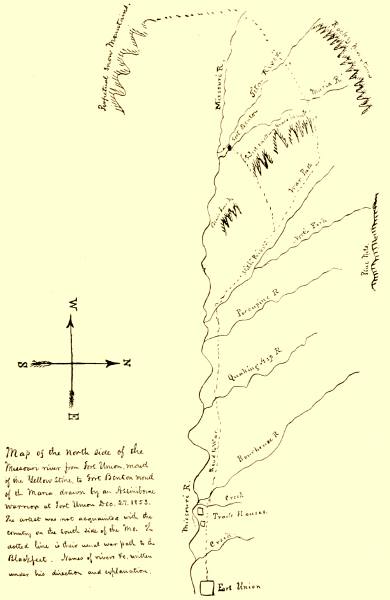 Dr. F. V. Hayden in his “Contributions to the Ethnography and Philology of the Indian Tribes of the Missouri Valley” says that Mr. Denig was “an intelligent trader, who resided for many years at the junction of the Yellowstone and Missouri Rivers as superintendent of Fort Union, the trading post for the Assiniboins.” Of the vocabulary of the Assiniboin language, recorded by Mr. Denig, Doctor Hayden wrote that it is “the most important” one theretofore collected. From the citation from Mr. Denig’s description of Fort Union in a preceding paragraph it appears that Doctor Hayden is in error in making Mr. Denig superintendent of the fort rather than of the office of the American Fur Co. at that point.