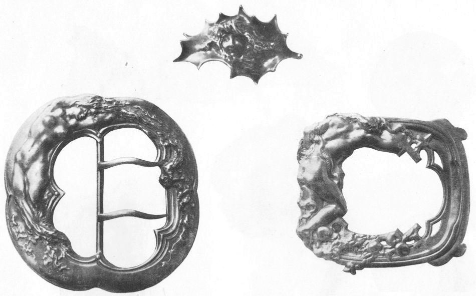 In the works of M. Paul Dubois we discover the sculptor modelling the details of his buckles and clasps as he would so many powerful muscles. M. Fernand Dubois seems to be a chercheur of a more subtle kind; but this very excess of ingenuity sometimes mars the plastic effect of his jewels.