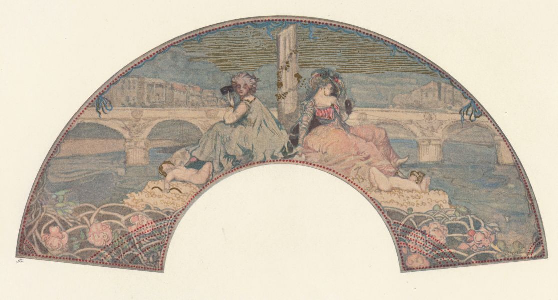One cannot truly say that Belgian eventaillistes exist, for it is only very occasionally that such water-colour painters as MM. Cassiers,[4] Stacquet, and Uytterschaut carry out their delightful landscapes and seascapes in the shape required for a fan.