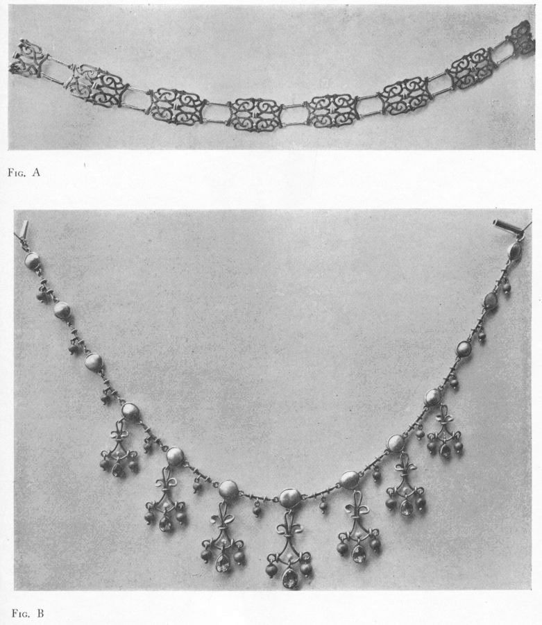 Of course, I do not despise the fine stone, which, by its bold colour, often relieves the work, but this is not altogether the object of the jewel, unless profit be the sole object of the maker; and I ought to add that the revival of the jewel in recent years has not been favourably regarded by certain firms, who saw therein a distinct diminution of gain, the fact being that their large stock of fine stones—beautiful in themselves, but out of place in works such as I have mentioned—threatens to remain on their hands.
