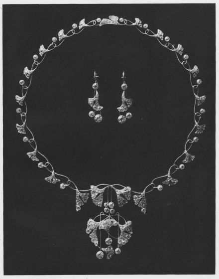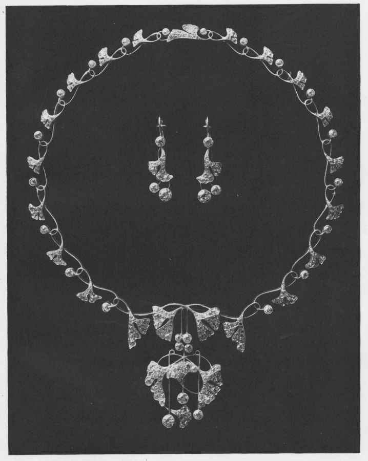 Be this as it may, the fructifying effects of these new ideas have, on the whole, been somewhat slow in making themselves felt within the craft of the gold and the silver-smith, or, rather, within that branch of it which embraces articles for personal adornment. Some countries have so far ignored them altogether; in others they are only just beginning to take root. In Denmark, for instance, which in other fields of applied art holds such an honourably prominent position, comparatively little attention has hitherto been given to jewellery by those distinguished artists who have for years brought their talent to bear upon other crafts. But, if I mistake not, a change is beginning to manifest itself in this respect, and I have[2] very little doubt that the material for an article on modern Danish jewellery will be vastly augmented within a span of but a few years, although it is unfortunately a little scanty at the time of writing.