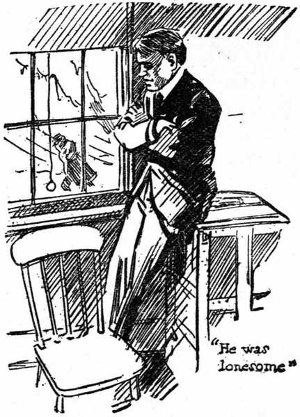Perhaps his room—there was only one small one—helped to make him lonesome. It was comfortably furnished and the meals which Mrs. Malcolm served her student boarder were good, but this was Harold’s first white winter. He had lived all of his eighteen years in the balmy climate of the Golden State, and he missed the warm sun and the bright green of the orange leaves and the yellow fruit which he had been used to back home, and he hadn’t become accustomed to wearing overcoat and rubbers yet as they did every day here in the East.