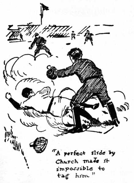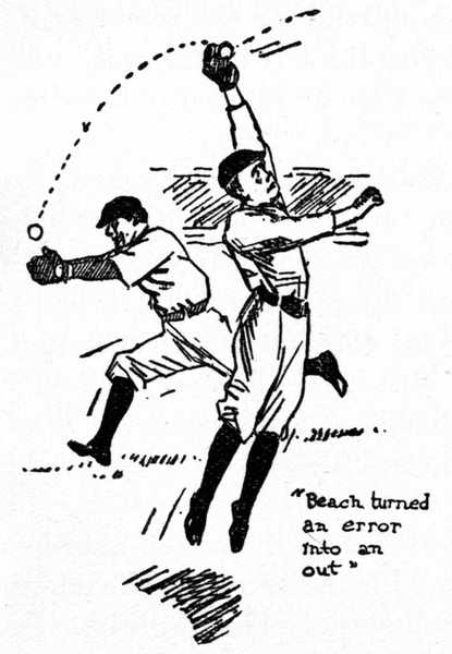 “Well,” said Johnny, “it didn’t really win the game, you know, because we were ahead then, but it kept the other fellows from winning. You see, some one said to us in the visitors’ dressing room of Bailey Oval that Walker of the Princeville team was a slow thinker. ‘I have a new trick for fellows that can’t think quick,’ said King, the catcher, and he explained it to us so we would be on the job if the chance came. Sure enough it did.