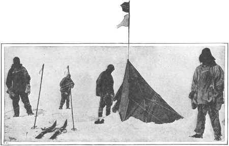 AT THE SOUTH POLE—PHOTOGRAPHED BY AMUNDSEN