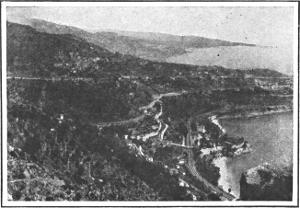 Across the Mediterranean is a stretch of shore that no traveler in Europe should miss. It is called “The Riviera,” and it extends from Cannes (kahn) to Ventimiglia (ven-tee-meel´-yah), thence to Spezia (spet´-see-ah), beyond Genoa (jen´-o-ah); the former section French, the latter Italian. From one end to the other is a chain of health resorts, some most fashionable, others the very opposite; the latter on that account more desirable to those who wish peace and quiet. Even in the most retired spots, however, there is no escape from the honk-honk of the motorcars; for Riviera highways are the favorite touring roads of southern Europe.