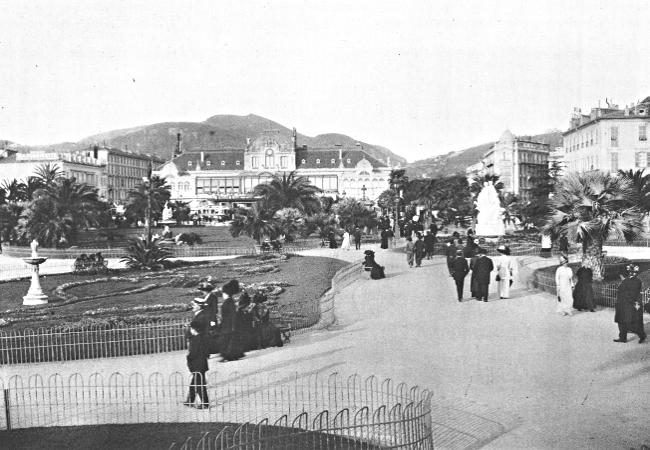 The Nicæa (ny-see´-a) of ancient times, founded by Massilians in the fifth century B.C., Nice is the birthplace of Masséna (mah-say-nah´) and Garibaldi, (gah-ree-bahl´-dee). Sheltered by the Maritime Alps, and because of the great limestone cliffs along shore, which absorb the heat rays of the sun, the temperature is so modified that flowers bloom the year round. Nice and its near neighbors have become a famous resort for invalids, especially of the English, who flee to this part of the world to escape their own disagreeable winter. In summer the temperature is fifteen to twenty degrees lower than Paris. The best view of the town is obtained from Castle Hill, overlooking the shore of the Promenade des Anglais, constructed by the English in 1822, in order to give work to the unemployed. One of the secrets of the great success of Nice as a resort is the great variety of entertainment offered by the clever Frenchmen. Fine hotels, theaters, casinos, promenades, and roads (the best in the world), especially the Petite and the Grand Corniche (kor-neesh´), together with a superb climate, are quite enough to attract people from all parts of the world. The business part of the town is a miniature Paris. Fine avenues, lined with shops filled with all kinds of attractive things, inveigle the tourist into extravagant expenditure; while casinos and gambling places relieve the venturesome of their spare cash most politely.