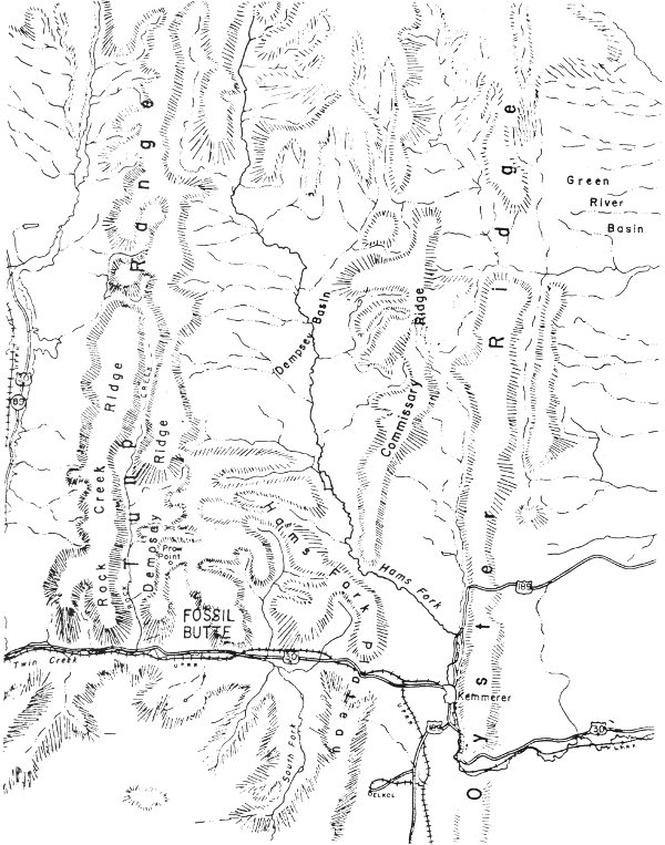Fig. 3. Physiography of the Fossil Butte National Monument region (from U.S. Department of the Interior 1964).