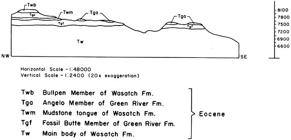 The Wasatch is well exposed in Fossil Basin. There the unit was regarded by Veatch (1907) as a group and divided by him into three formations: the Almy, Fowkes, and Knight. He wrote (1907:88):