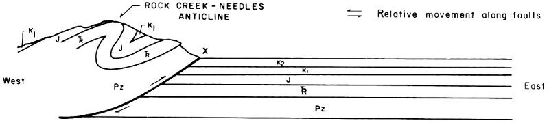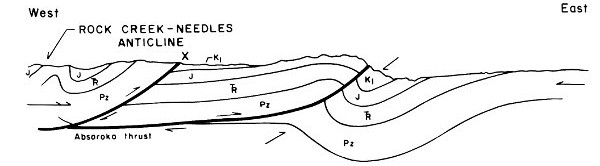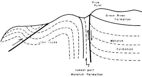 Within the monument itself the oldest rocks exposed are those of the Thaynes Limestone near Prow Point. As will be seen in the discussion of the structure of the Fossil Basin, all of the rocks beneath the Evanston Formation are folded and faulted and within the monument are buried by deposits of Tertiary age. For this reason detailed discussion of stratigraphic units will be confined to those rocks that can be seen within the boundaries of the monument or closely adjacent to it (Fig. 5). The distribution of the various formations within the monument is illustrated in Figs. 7 and 8.