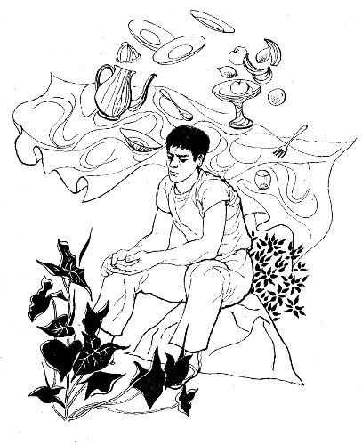 "Sorry, fella," Dan apologized to me. The tablecloth spread itself out on the table. "Wrinkles," he grumbled to himself. "Wrinkles. And I had it so nice and smooth before. Mother will be furious."