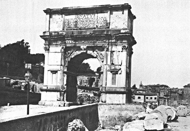 This arch is a memorial of the war waged by Titus against the Jews, in which he besieged and destroyed Jerusalem, their holy city. During the conflict the Jews resisted with superhuman energy; and when everything was lost they killed one another and their wives and children as the lot determined, in order not to be slaves. The fame of their heroism is as imperishable as the military renown of the conqueror. The triumphal arch, accordingly, represents the slaughter of innocent people, the crushing of national liberty, the brutal sacking of cities, the merciless sale of captives into slavery. While casting this gloomy shadow, it reflects on the sunlit side the glory of victory and the extension and solidification of Roman power.