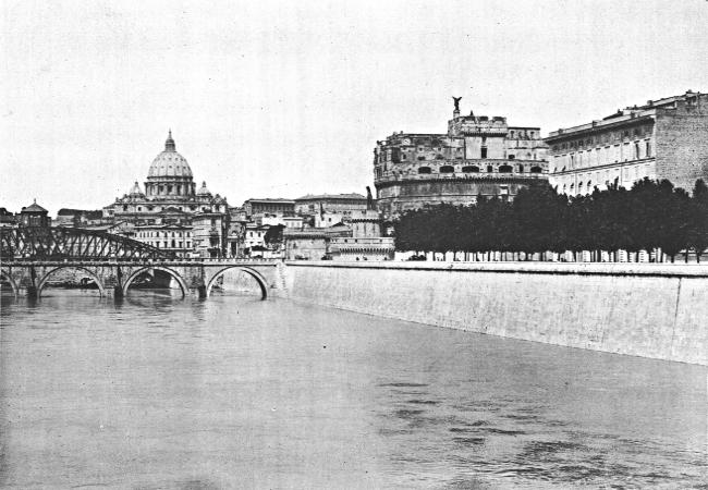 Shortly after sunset the express train, speeding north from Naples, emerges from the mountains and begins winding its way down grade. The expectant visitor to the Eternal City sees below him through the car window a broad expanse of plain, sloping imperceptibly on the left to the sea, in front to the Tiber River. It is an ocean of green, here quietly level, there billowed in ridges or headed up in round hillocks.