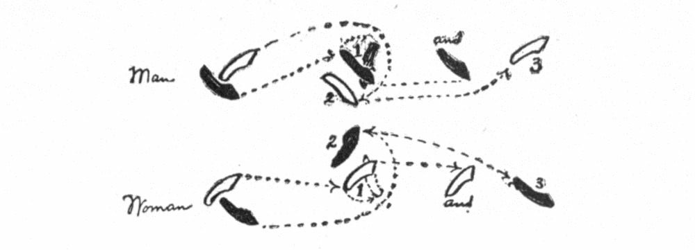 Revived interest in dancing. New forms of dance suited to the present freedom of individual expression. Rapid changes. The Turkey Trot. New names for slightly altered dances already familiar. The Argentine Tango; significance. Detailed instruction for performance of the One-Step, the Boston, the Hesitation Waltz, the Tango, the Brazilian Maxixe. Tendencies toward revival of old court dances. | ||