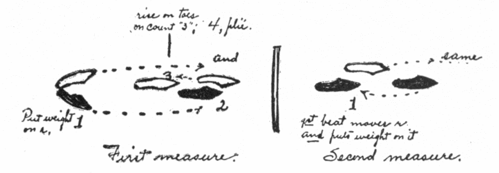 Ballet dancing can be seen intelligently only by aid of acquaintance with elemental steps. Fundamental positions of feet and hands. Gliding steps: chassé, échappé, coupé, etc. Battements, grand, petit. Changement. Entrechat. Brisé. Balloné. Enchainements. Pas de Bourrée, pas de Basque. | ||