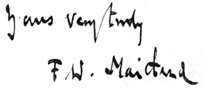 Whatever merit this Memoir may possess it owes to Maitland and to the circle of those who cherish his memory. My own disabilities will be made plain to the reader, but, lest he entertain false expectations, let me explain at the outset that I was educated neither at Eton, nor at Cambridge, nor at Lincoln's Inn, that I am no lawyer, and that I have never received a formal education in the law. Finally, I did not make Maitland's acquaintance till he was in his thirty-seventh year. These are grave shortcomings, and if I do not rehearse the long roll of benefactors who have helped me to repair them, let it not be imputed to a failure in gratitude. I cannot, however, forbear from mentioning five names. Before these sheets went to Press they were read by Mrs Maitland, by Mrs Reynell, by Dr Henry Jackson, by Dr A. W. Verrall and by Professor Vinogradoff. To their intimate knowledge and weighty counsels I owe a deliverance from many errors. Dr Jackson has generously laid upon himself the additional burden of helping me to see the volume through the Press.