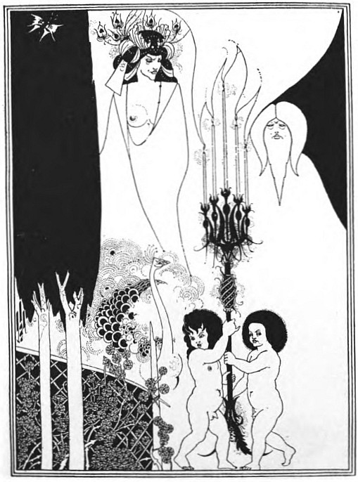 "In more ways than one do men sacrifice to the rebellious angels," says St. Augustine; and Beardsley's sacrifice, together with that of all great decadent art, the art of Rops or the art of Baudelaire, is really a sacrifice to the eternal beauty, and only seemingly to the powers of evil. And here let me say that I have no concern with what neither he nor I could have had absolute knowledge of, his own intention in his work. A man's intention, it must be remembered, from the very fact that it is conscious, is much less intimately himself than the sentiment which his work conveys to me. So large is the sub-conscious element in all artistic creation, that I should have doubted whether Beardsley himself knew what he intended to do, in this or that really significant drawing. Admitting that he could tell exactly what he had intended, I should be quite prepared to show that he had really done the very contrary.