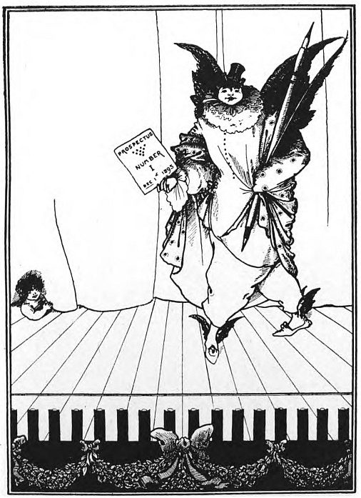 It was in the summer of 1895 that I first met Aubrey Beardsley. A publisher had asked me to form and edit a new kind of magazine, which was to appeal to the public equally in its letterpress and its illustrations: need I say that I am defining the "Savoy"? It was, I admit, to have been something of a rival to the "Yellow Book," which had by that time ceased to mark a movement, and had come to be little more than a publisher's magazine. I forget exactly when the expulsion of Beardsley from the "Yellow Book" had occurred; it had been sufficiently recent, at all events, to make Beardsley singularly ready to fall in with my project when I went to him and asked him to devote himself to illustrating my quarterly. He was supposed, just then, to be dying; and as I entered the room, and saw him lying out on a couch, horribly white, I wondered if I had come too late. He was full of ideas, full of enthusiasm, and I think it was then that he suggested the name "Savoy," finally adopted after endless changes and uncertainties.