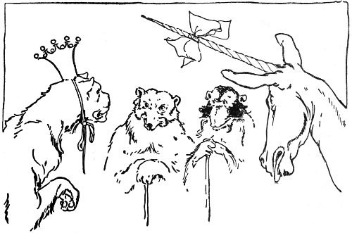 She was greeted by a cheer from all the assembled company, the animals adding their roars and growls and barks and mewing and cackling to swell the glad tumult, and then all seated themselves at their tables.