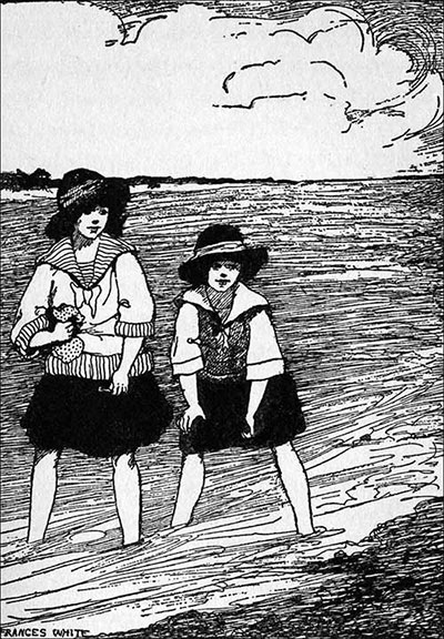 But a week gave very little time to make ready so everybody had to help. There were gingham dresses from last summer’s13 wardrobe to get out and let down; each little girl had to have a new bathing suit, for who wants to go South without a swim in the ocean? New hats must be purchased because the velvet hats Alice and Mary Jane were wearing would be very heavy in the warm southern sunshine. Then the house must be shut up for its two weeks’ vacation, and everything must be made snug so that cold weather would do no damage. Mary Jane was so busy helping do errands and getting things out of drawers and closets and helping to pack that it’s no wonder she thought the time went quickly.