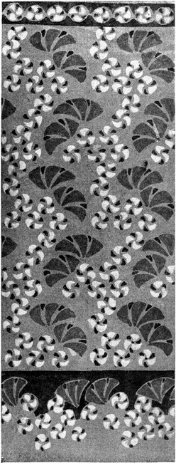 Auch der Teppich ist auf diese anheimelnde einfach vornehme Gesamtwirkung gestimmt. Es ist aber durchaus nicht »stilwidrig«, in einem solchen Raum einen echten Perserteppich aufzubreiten. Überhaupt was ist Stil? Wenn irgend ein antikisierender in Holz geschnitzter Fries, bald auf Schränken und Betten aufgetragen und auseinandergezerrt und dann wieder auf Nachtkästchen schmal zusammengedrängt wird, so nennt man das im Möbelhändlerverstande »stilgerecht«. Wenn aber jemand in seiner Wohnung heterogene Dinge zusammenträgt, die ihrer[S. 37] Entstehung nach, räumlich und zeitlich, sehr getrennt sein mögen, aber durchaus echt sind, so ergibt sich vermöge dieser Echtheit eine gewisse Einheit und diese Einheit kann man füglich Stil, vielleicht den einzig wahren und naturgemäßen Stil nennen. Darum beleidigt es unser Empfinden nicht, wenn wir in der neuen Wohnungs-Ausstattung einen echten Perser und an den Wänden gar echte Gobelins vorfinden. Die orientalischen Teppiche haben schöne geometrische Muster und die liegen uns ästhetisch wahrhaft näher, als alle plumpen Pflanzenstilisierungen, die man in der wohlfeilen Teppichfabrikation antrifft. Überdies hat die Moderne auch passende Teppiche geschaffen, die in ruhigen Farben gehalten sind, eine strenge geometrische Zeichnung oder irgend eine phantasievolle Linienführung aufweisen und die Stimmung solcher Räume harmonisch abschließen, Teppiche von Kolo Moser, Josef[S. 38] Hoffmann, Josef Olbrich, Leopold Bauer, Peter Behrens, Max Benirschke u. v. a.