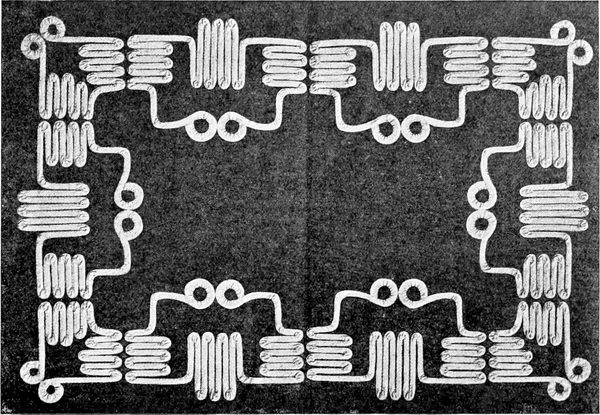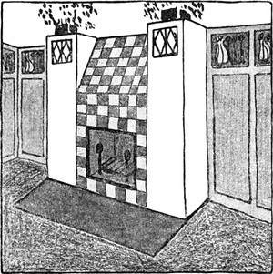 In Bezug auf die Heizkörper ist ähnliches zu sagen. Frühere Zeitalter, die u. zw. Renaissance vor allem, hat Öfen gehabt, an denen die Freude am Ornament wahre Orgien feierte. Jeder Kachel trug ein anderes Ornament, eine andere figurale Darstellung, eine andere Farbengebung. Das ganze war ein Wunderbau wie der babylonische Turm. Im Zeitalter des Barock, Rokoko und Empire begegnet man weiß glasirten Öfen in geschwungenen Linien, oder Obeliskenformen, die ein Postament für plastische Gruppen vorstellten. Später kam die Hafnerkunst gänzlich auf den Hund. Heute kann man dem Ofen und der Holz- und Kohlenheizung nicht mehr das Wort reden. Eine neue Beheizungsart stellt sich vor: die Zentralheizung durch erwärmtes Wasser oder Luft und die Gasheizung. Gaskamine wendet man in Wohnungen sehr vorteilhaft an;[S. 42] man kann sich des von der gerippten, blinkenden Metallfläche wiederstrahlten Feuerscheins erfreuen, ein Hochgenuß für romantische Gemüter, die nach der anheimelnden Poesie der »Fireside« der offenen Kamine, eine unbezähmbare Sehnsucht empfinden. Sie können am Gaskamin ihrer Sehnsucht fröhnen, ohne die Schattenseiten der begehrten Dinge zu empfinden. Denn diese Einrichtungen sind technisch vorzüglich. Aber sie sind vom ästhetischen Standpunkt aus unerträglich. Sie sind gewöhnlich[S. 43] mit den heillosesten Stilschnörkeln verbrämt. Da hilft nur Eines: Man gibt ihm eine hölzerne Umhüllung, weiß oder sonstwie lackiert, mit einem Gesimse für kleine Kunstwerke versehen und mit Sitzgelegenheiten rechts und links. Wir haben damit in unserer Stadtwohnung die gemütlichste und traulichste Einrichtung gewonnen, wie man sie sonst nur in einem englischen Hause zu finden gewohnt ist.
