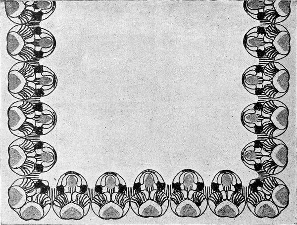 Die weiblichen Handarbeiten, die in diesem Zusammenhange erwähnt werden müssen, bedürfen gleichfalls einer künstlerischen Reform. Hier sollte eigentlich der Ausgangspunkt der häuslichen Kunstpflege sein. Leider hat auf diesem Gebiete die Schablone jede Regung von Selbständigkeit und Geschmack erstickt. Die Arbeit ist zu einer ermüdenden, tötlich langweiligen Übung, zum bloßen mechanischen Ausnähen von allerlei Lappen herabgesunken und rechtfertigt die Verachtung, mit der die radikal Gesinnten die geistlose Beschäftigung ablehnen. Trotzdem sind sie nicht zu entbehren. Sie werden wieder ein Segen sein, wenn die rein mechanische Handarbeit zur künstlerischen Arbeit geadelt ist, was der Fall sein wird, wenn die »handarbeitenden« Frauen die Muster, die sie ausführen, selbst entwerfen auf Grund klarer Kenntnis der Technik, des Materials und des Zweckes.