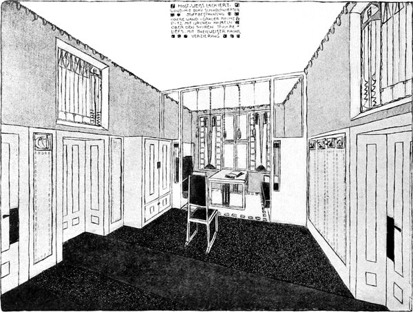 Daß die Hausarchitektur im Zeichen des Umschwunges steht, wird niemand mehr leugnen. Die Architektur, die schwerfälligste aller Künste, folgt dem neuen Zug freilich zuletzt, denn sie hat nicht nur das größte Trägheitsmoment, das Schwergewicht der Gewohnheit, sondern auch die Gewissenlosigkeit des Bauspekulantentums und die Gleichgiltigkeit des Publikums zu überwinden. Das leichtbewegliche Kunstgewerbe, das heute führend vorangeht, konnte viel schneller das Feld erobern, und man kann sagen, daß die Schwenkung, die auch im Hausbau zu spüren ist, vom Kunstgewerbe veranlaßt, ja fast erzwungen worden ist. Denn das Kunstgewerbe verlangt einen festen Stützpunkt, eine Führung, einen Halt, und diesen kann nur die Architektur geben. Im Einzelwohnhaus ist da und dort dieser ursächliche Zusammenhang von Architektur und Handwerk, von Raum und Möbel, zwar schon hergestellt oder doch angebahnt, aber im Miethaus der Stadt, also in der Stadtwohnung, deren ästhetische Durchbildung doch eine der nächstliegenden Aufgaben ist, sind wir nicht immer so glücklich daran. Wie notwendig es ist, dass Kunstgewerbe und Hausbau Hand in Hand gehen, und wie eines ohne das andere nicht bestehen kann, will ich an einem typischen Fall nachweisen, der auf hunderte von Beispielen paßt, die sich in der Stadt von Tag zu Tag mehren. Jemand war des im Mittelstande eingebürgerten Atelierstils, des Markartbouquets, der künstlichen Palme und der verpöbelten Renaissancemöbel überdrüssig, er entfernte die Stoffgardinen, um wieder Luft und Licht in den dämmerigen Raum zu lassen, Zimmerpflanzen ziehen zu können und Freundlichkeit zu verbreiten. Aber die braunen Möbel vertragen die Helligkeit nicht, ihre Häßlichkeit und Unzweckmäßigkeit, die[S. 26] Erbärmlichkeit des ganzen unechten Luxus wurde mit einem Male unerträglich und sie wurden ersetzt durch jene gefälligen neuen Möbel, deren Wesen Einfachheit und Natürlichkeit ist, und die in dem sogenannten Biedermeiermöbel unserer Groß- und Urgroßeltern vorgebildet waren, die also gewiß nichts Fremdartiges, sondern etwas durchaus Heimatliches, Bodenständiges, Trautes waren. Aber es nützt nicht, daß man den neuen Wein in die alten Schläuche füllte. Das Mißverhältnis zwischen Raum und Möbel trat dann erst grell zutage. Die Möbel waren gewiß zwecklich formal gebildet, aber die Zimmer! Das Raumausmaß war groß genug und dennoch konnte man nichts unterbringen. An ein geschmackvolles Stellen der Möbel war nicht zu denken. Daran waren die Türen und Fenster schuld. Denn es gehört schon einmal zu dem eingebürgerten Begriff von einer Stadtwohnung, daß ein Zimmer zwei Fenster haben muß. Die Fensterwand geht natürlich fast verloren, denn links und rechts bleibt kein nennenswertes Stück Wand, und es erübrigt nur noch der Pfeiler, der einen dunklen Schatten mitten ins Zimmer wirft. Die Beleuchtung wird dadurch noch schlechter, daß die Fenster das Hauptlicht nicht von oben her geben, sondern von den untern Flügeln, so daß nur der[S. 27] Fußboden vor dem Fenster die Helle empfängt, was für das Auge das denkbar ungünstigste ist. Die einfachste und natürlichste Lösung wäre nun die, ein einziges etwas breiteres in der Mitte anzubringen, wobei nicht nur eine ausgezeichnete Belichtung erzielt werden kann, sondern auch links und rechts tiefe Ecken gewonnen werden, die es gestatten, gewisse Möbelstücke, das Sofa zum Beispiel, quer anzuordnen, oder die Nische so auszubauen, daß das Gefühl der Geschlossenheit und Geborgenheit erhöht wird. Viel ist auf diese Weise gewonnen, aber noch lange nicht alles. Denn da sind noch die Türen, die unseligen großen Flügeltüren, deren manches Zimmer drei besitzt, und die von jeder Wand ein erhebliches Stück wegnehmen. Man behalf sich früher mit einer Draperie, um sie wenigstens dekorativ zu gestalten, was im Wohnraum einen nichts weniger als sympatischen theatralischen Eindruck macht. Aber immer noch besser als die nackten, überflüssig hohen und breiten Palasttüren mit dem widersinnigen braunen Anstrich und der ebenso widersinnigen künstlichen Maserung. Daß der Raum auch geräumig werde, günstige Raumverhältnisse besitze, hängt also nicht allein vom Fenster, sondern auch von der Lage und Größe der Türen ab. Das sind die zwei Angelpunkte, um die sich die neue und vernünftige Raumgestaltung dreht. Noch ist dadurch fast gar nicht der Grundriß tangirt, noch ist fast keine Forderung an den Erfindungsgeist der Architektur gestellt, sondern erst ganz einfach eine gewisse Empfindungsfeinheit verlangt, ein Mitgefühl für die Menschen, die in den Räumen wohnen, und darinnen die Möglichkeit finden sollen, ihr Leben behaglich zu gestalten. Es ist ja wahr, die meisten Menschen verlangten die bisherigen[S. 28] Wohnungen gar nicht besser, sie haben nicht das Bedürfnis, ihre Umgebung künstlerisch gestaltet zu sehen, aber das hindert nicht, daß der Architekt, wofern er ein Künstler ist, den früher oder später ja doch eintretenden künstlerischen Bedürfnissen vorarbeiten und dergestalt die Prämissen einer höheren Kultur schaffen soll. Für diese Kulturarbeit ist der Architekt einer der wichtigsten Faktoren, und man kann sagen, ohne ihn kann nichts geschehen. Aber die Empfindungsfeinheit, die von dem künstlerischen Architekten (der andere kommt nicht in Betracht) verlangt werden muß, wird bei dieser Tat nicht stehen bleiben. Er wird die bürgerlichen Menschen nicht allein von dem überflüssigen und daher schädlichen und geschmackverderbenden Luxus, der sich in den billigen albernen Ziraten oberhalb der Tür und in den rein äußerlichen nur auf die Außenerscheinung berechneten Zutaten an den Fenstern äußert, befreien, sondern er wird auch sein Auge auf die Wände, den Boden und die Decke, endlich auf den Anstrich der Holzteile richten, er wird die Teile nicht der Obsorge des Zimmermalers und Anstreichers überlassen, die in Geschmacksdingen auf dem tiefsten Niveau stehen; er wird vielmehr