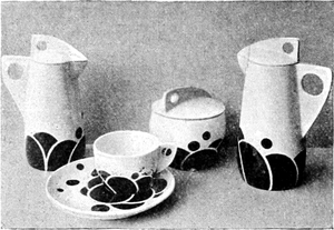 Dem Glase steht das Porzellan zunächst. Ich weiß, daß die meisten Leute buntbemaltes Geschirr lieben. Es macht zwar nicht viel aus, ob[S. 61] das Geschirr bemalt ist oder einfach weiß, nur ist zu bedenken, daß die Bemalung häufig Schäden des Porzellans verdecken muß. Reliefartiger Dekor am Tellerrand ist im höchsten Grade unzweckmäßig, aber alles Unzweckmäßige ist am häufigsten anzutreffen. Ganz weißes Geschirr ohne bunte Streifen ist sehr vornehm in der Wirkung, aber merkwürdigerweise selten im Gebrauche zu finden.