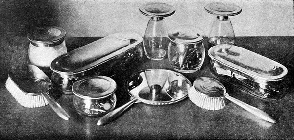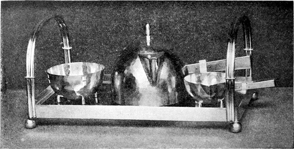 Und nun das Silber. Es ist ja heute noch der Stolz jedes wohlhabenden Hauses, der wohlgehütete Schatz, den man nur zu besonderen Festtagen oder zu Ehren eines Gastes zu verwenden wagt. Die Silberlöffel im Alltag zu gebrauchen, würde der Mehrzahl der Hausfrauen als beispiellose Verschwendung erscheinen. Ich weiß wirklich nicht aus welchem Grunde. Gerade für den Alltagsgebrauch ist echtes Edelmetall wie Silber allein zu verwenden, weil es widerstandsfähiger und sauberer[S. 62] zu halten ist als billiges Zeug, das oftmals erneuert werden muß, immer übel aussieht und zuguterletzt viel höher zu stehen kommt als Silber. Der wahrhaft ökonomische Sinn wird sich immer nur des letzteren bedienen. Gewöhnlich aber ist für die Hausfrau das Silberzeug bloß Gegenstand des platonischen Genusses, ohne weiteren Daseinszweck, als »still im eigenen Glanz zu ruhen«, und als Brautgeschenke gefühlsame Erinnerungen der Hausfrau zu bewahren. Den Kranz so frommer Tugenden aber wollen unsere ungeweihten Hände nicht zerreißen. Sprechen wir lieber von der Form, die das Silberzeug erhalten hat. Die Liebe der Künstler hat sich ja dem Silber in besonderem Maße zugewendet, und gerade in den letzten Jahren ist viel an dem Tafelbesteck probiert worden. Bei der heutigen Art, Messer und Gabel leicht zu halten, hat das Besteck auch jene Leichtigkeit und Zierlichkeit erhalten, die man ihm wünschen mag. Jedermann hat sich schon über die Gabel geärgert, die absolut keine Sauce fassen will. Als aber Oberbaurat Otto Wagner sein Reformbesteck ausstellte, gab es dennoch eine kleine Erschütterung. Man ist die alte Form schon so gewöhnt, daß die wenigsten Menschen einsehen[S. 63] wollen, daß es da noch etwas zu reformieren gibt. Da gab aber eines Tages ein einarmiger General den Anstoß zu einer Revolution. Der wollte eine Gabel, mit der er nicht nur spießen, sondern auch schöpfen und nötigenfalls auch schneiden konnte. Die Gabel wurde gefertigt; sie besaß eine flache löffelartige Form mit drei kurzen Zinken, so daß man damit bequem spießen und zugleich Sauce fassen konnte.