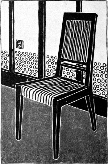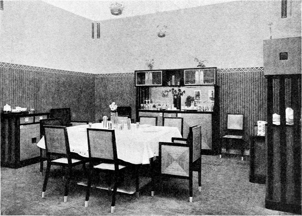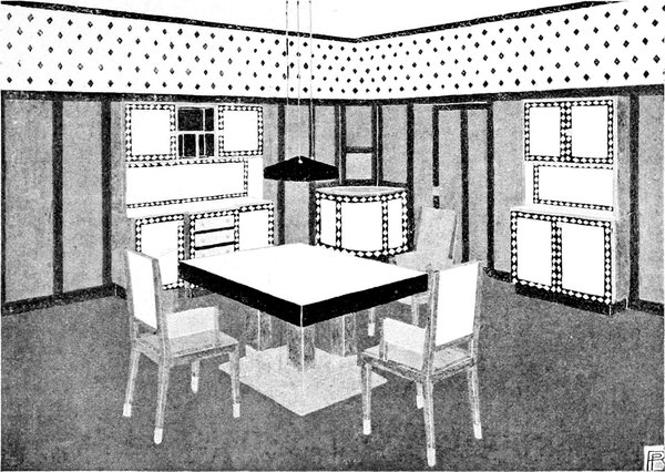 Beim Stuhl begann die Revolution. Man verlangte, daß er Bequemlichkeit gewähre, und bestimmte die Sitzhöhe nach dem körperlichen Maß. Eigentlich hat man das auch in Goethes Zeiten getan und vielleicht schon zu Moses Zeiten, aber man hat seit der Zeit, da man fremde Stile kopierte, darauf vergessen. Die Querleisten zwischen den Beinen wurden[S. 67] als lästig empfunden und blieben weg. Dann kam die Lehne in Betracht. Hiebei ist die Atmung zu berücksichtigen. Geht die Lehne im Bogen, so muß sie unter den Schultern abschließen, sonst verursacht sie Atembeklemmungen. Geht sie höher, so schließe sie besser gerade ab. Doch soll sie möglichst niedrig sein, sonst bildet sie ein Hindernis beim Servieren. Von der Stuhlform hängt der Tisch ab. Die richtige Höhe ist bei Speisetischen sehr wichtig. Ausziehtische sind natürlich bevorzugt, wenn sie auf guten Rollen laufen. Die Zarge darf nicht so weit herabreichen, daß sie das Knie des Sitzenden beengt. Die Querstangen sind absolut zu vermeiden. Man hat neuestens den Tischfuß mit gehämmertem Messing umkleidet, darauf man unbekümmert die Füße stellen kann. Buffet, Teetisch, Serviertisch ergänzen das Mobilar. Das Ornament besteht höchstens in eingelegten Linien, im flachen Dekor. Glatte polierte Formen, die anmutige Reflexlichter erzeugen, den Glanz des Silberzeugs, die Weiße des Porzellans widerspiegeln, sind durchaus beliebt. Die[S. 68] Tafelaufsätze sind niedrig, einfach und zweckvoll. Den Hauptschmuck bilden die Blumen, auf der Tafel und am Fenster. Dort hängen keine Stoffgardinen mehr, die Rembrandtstimmung ist dahin, alles ist auf Luft und Licht und Farbe gestimmt, auf helle, freundliche Farben. Durchsichtige Gardinen, seitlich aufzuziehen, hängen in geraden Falten herab. Die Wände sind natürlich auch hell, keine Tapeten, keine Dessinierung. Perlgrau zum Beispiel. Das Möbelwerk gebeizt oder lackiert. Mahagoni ist schön und teuer. Rot gebeiztes Holz tut es auch. Stühle und Tisch in diesem Ton, dagegen die Buffets, die Kaminverkleidung, der Blumenständer etc. weiß lackiert. Das gibt einen schönen Akkord. Unter Kaminverkleidung verstehe ich die Umhüllung des Gaskamins, mit Fächern zur Aufnahme von allerlei Kleinkunst. Für den Bodenbelag findet man heute schon gutes und billiges Zeug in geeigneten Farben, entweder einfärbig oder gestreift oder sonst mit einem ruhigen Linienornament. Wo elektrisches Licht ist, hat man den Vorzug einer gleichmäßig verteilten Deckenbeleuchtung. Auch bei den Beleuchtungskörpern lasse man es nur auf reine Zwecklichkeit ankommen und verschmähe allen ornamentalen und figuralen Kram, der sich in dieser Form immer wieder anpreist. Erst wenn man von jedem Ornament absieht, wird man zu ruhigen, einheitlichen Wirkungen und zu einer stillen und vornehmen Schönheit gelangen. Wenn man einmal so weit sein wird, die Farbe zu würdigen, die ungebrochenen einfachen Farben, nicht die schmutzig aussehenden, dann wird man im Raum glückliche Ergebnisse erzielen, die man nur andeuten kann.