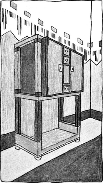 Vor Jahren sah es freilich noch anders aus. Wie es in den meisten Wohnungen heute noch aussieht. Altdeutsch war es, oder was man darunter versteht. Der Plüschdekorationsdivan trug die ach so bekannten Dekorationsteller. Die altdeutsche Kredenz war geschnitzt, zwar sehr roh und albern, aber im großen und ganzen trug das Möbel eine Façade wie ein italienischer Palazzo. Säulen waren an jedem Türchen, aber sie hatten nichts zu stützen. Sie waren angeklebt und bewegten sich mit der Tür auf und zu. Ich erzähle das nur, um auf den Widersinn einer solchen Ornamentik, die man an jedem derartigen Möbel finden kann, gebührend aufmerksam zu machen. Die anderen Einrichtungsstücke paßten dazu — insofern waren sie wirklich »stilgerecht«. Der massive Speisetisch hatte unten eine kreuzweise Verspreizung, so daß man nie recht wußte, wie man die eigenen Beine unter dem Tische unterbringen soll. Es war zu wenig Platz, und sie auf die Verspreizung zu stellen, litt die Hausfrau nicht. Die üblichen Speisezimmersesseln standen herum, mit Sitzflächen aus Holz, das figurale Ornamente eingepreßt hatte, so daß man sich nicht niedersetzen konnte, ohne sich einer schönen Marke mitten ins Gesicht[S. 65] zu setzen — herrlich! Natürlich war auch ein Pfeilerspiegel da mit Trumeau, dunkle Vorhänge, um alles in allem die beziehungsreiche, wurstrot- und sauerkrautfarbene Gesamtstimmung zu erzeugen, die seit einer Generation in Speisezimmern so beliebt ist.