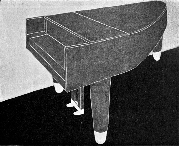 Wenn ein Künstler sein Bestes getan hat, ist es nicht seine Schuld, daß es trotzdem unverhältnismäßig hoch und breit und störrisch dasteht. Klaviere sind einmal so. Man müßte, um einmal die wohltemperierte Klavierform zu finden, sich einmal an George Logan in Greenock (Schottland) wenden, von dem aus der Turiner Ausstellung 1902 ein Musikzimmer bekannt ist, das uns der Künstler zwar nur als Aquarellbild zeigen konnte. Aber es genügt, um den Traum eines Künstlers kennen zu lernen. Eine heitere, kindlich fröhliche Mozartstimmung herrscht in dem Raum, über den Teppich schreitet man wie auf einer blumigen Au, an den weißgetäfelten Wänden stehen in hohen Vasen Blütenzweige, die einen Frühling ins Gemach zaubern, und man mag es glauben, daß hier die Töne hell und lustig fliegen wie muntere Spielbälle. Zwei sitzen am Klavier, wahre Blumenerscheinungen, und das Klavier, aus Ebenholz mit sparsam verteilten hellen Einlagen ist von ganz idealer Erscheinung.[S. 120] Zart und einfach gebaut, fügt es sich harmonisch in den Raum ein. Hier stört kein Mißton, auch kein sichtbarer. Ist es auch nur ein Künstlertraum, so mag, da er greifbare Formen gefunden, die Möglichkeit nicht fern sein, daß er ganz reale Wirklichkeit werde, wofern die Klavierfabrikanten wollen. In bürgerlichen Wohnungen wird man sich mit einem Pianino begnügen müssen, die bereits ganz moderne Formen, ohne jeden Stilschnörkel aufweisen.