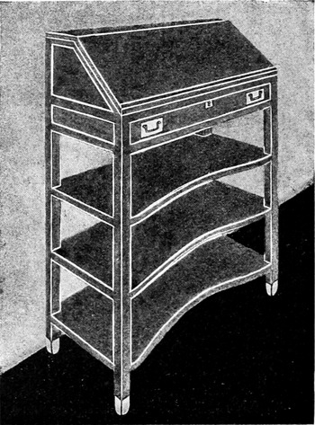 Ein Zusammenhang zwischen Junggesellenwohnung und Herrenzimmer ist durch den Umstand gegeben, daß auch das letztere Wohn- und Arbeitsraum oder auch Salon des Hausherrn ist, wie der Name »Herrenzimmer« überdies schon sagt. Es kommt im Hauswesen dort vor, wo die Hausfrau entweder ihren »Damensalon« oder ihr »Boudoir« hat, oder wo man aus Ökonomie auf den »Salon« überhaupt verzichtet und das eine zu erübrigende Gesellschaftszimmer vorzugsweise auf die Bedürfnisse des Hausherrn hin zurechtmacht. Massive, dunkel gebeizte[S. 106] oder polierte Möbel mit einfachen blanken Beschlägen finden sich darin, ein großer Bücherschrank, ein entsprechender Arbeits- oder Schreibtisch, große gepolsterte Sitzmöbel mit grauem oder braunem Lederüberzug, alles ernst und einfach und von der gewissen Vornehmheit, die in der Gediegenheit überhaupt liegt. Ist der Hausherr Waffensammler, so findet sich ein Waffenschrank vor, überhaupt Möbel, die seinen besonderen Liebhabereien oder Berufszwecken dienen. In einfachen Rahmen hängen Bilder oder Stiche, manche kühne Modernität, »le Nu au Salon«, warum nicht? Ein Tropfen Pikanterie vermengt sich mit dem Duft schwerer Zigarren. So findet man es häufig. Aber das dominierende, ehrfurchteinflößende Möbel ist der große Schreibtisch. An ihn werden heute die persönlichsten Anforderungen gestellt, nicht weniger als an den guten Sessel. Hier hat eine gute Tradition mitgearbeitet. Aus dem Anfang des neunzehnten Jahrhunderts sind große, sorgfältig erdachte Schreibtische überliefert, große Diplomatenschreibtische mit verschließbarem Pultdeckel, einfach geistreich kombiniert, dem amerikanischen roll desk nicht unähnlich, ferner eine Unzahl verschiedenartiger[S. 107] Damensekretäre mit zahlreichen Fächern und durchaus verschließbar, als ein glänzendes Zeichen einer geistig ungeheuer regsamen Zeit. Man schrieb fleißig Tagebücher, unterhielt mit allen Zeitgenossen regen, brieflichen Verkehr. Auch der Schreibtisch von damals bildet gewissermaßen ein menschliches Dokument. Was so ein verwittertes Möbel nicht für Geheimnisse verbirgt, und was so einem Kasten für anmutige Rätsel abzulesen sind, diesen Läden, die einst vollgestopft waren mit Gedichten, Liebesbriefen, Prozessen und Romanzen, schweren Locken und anderen Liebeszeichen, gleich einem Riesensarg, der mehr Tote enthielt als mancher Gräberhain. Sentimentalitäten, nicht wahr? Aber ein Persönlichkeitszug ging durch die Dinge des Hausrats, das wollte festgestellt sein. Und einen Persönlichkeitszug will man den Dingen heute wieder geben. Der Schreibtisch sollte seinem Besitzer angemessen sein wie ein Kleid. Konstruktiv besitzt der amerikanische verschließbare Schreibtisch viele Vorteile, für das Privatzimmer ist er aber allzu bureaumäßig. Im Halbkreis geht die Tischplatte um den Sitzenden, auch die äußersten Enden in den Bereich seiner Hände rückend. Van de Velde’s Schreibtisch, der diese Form aufwies, war eine Sensation.