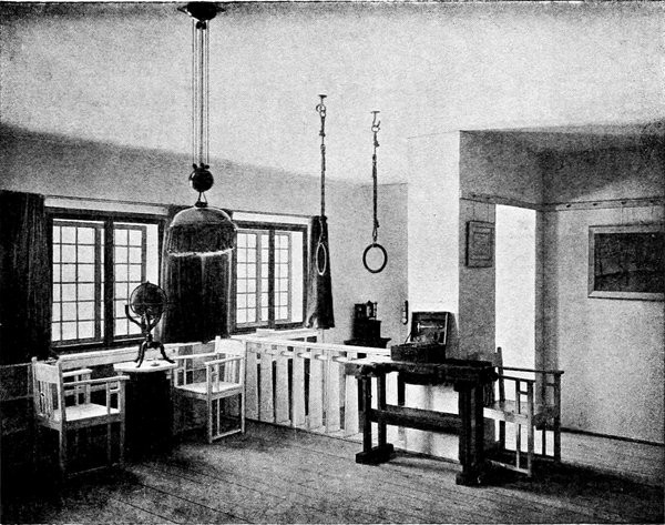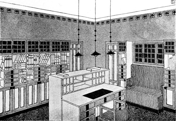 Das ist rein alles, was wir in unserem Junggesellenheim brauchen, wenn wir nicht musikalisch sind und ein Klavier haben müssen (in Bezug auf deren Schönheit wir übel daran sind), und wir können nur[S. 102] sehr wenig zu diesen notwendigen Dingen hinzufügen, wenn wir nicht sowohl beim Arbeiten wie beim Nachdenken und Ausruhen gestört sein wollen. Wenn diese Dinge für die geringsten Kosten, für die sie gut und dauerhaft ausgeführt werden können, hergestellt würden, würden sie nicht viel Auslagen verursachen, und sie sind so wenig, daß die, welche die Mittel haben, sie überhaupt anzuschaffen, sich auch bemühen könnten, sie gut ausgeführt und schön anzuschaffen, und alle die, denen die Kunst am Herzen liegt, sollten sich sehr bemühen, dies zu tun, und dafür sorgen, daß keine Scheinkunst sie umgibt, nichts, dessen Herstellung oder Verkauf einen Menschen herabgewürdigt hat. »Und ich bin fest überzeugt, daß, wenn alle, denen die Kunst am Herzen liegt, sich dieser Mühe unterzögen, dies einen großen Eindruck auf das Publikum machen würde.« Mit diesen Worten entwirft der englische Kunstgewerbler und Dichter William Morris, der als Apostel der neuen und eigentlich uralten Glaubenssätze allerortens eine sich täglich mehrende Gemeinde hat, einen solchen einfachen Raum und sagt: »Diese Einfachheit können Sie andererseits so kostbar herstellen wie Sie wollen oder können; Sie können Ihre Wände mit gewirkten Tapeten behängen, statt sie zu weißen oder mit Papiertapeten zu bekleben; oder Sie können sie mit Mosaikarbeiten verdecken, oder auch durch einen großen Maler Freskomalerei darauf anbringen lassen — all dies ist nicht Luxus, wenn es um der Schönheit willen und nicht zum Zwecke der Schaustellung geschieht.« Das kann man der Liebhaberei des Bestellers überlassen. Im allgemeinen[S. 103] wird die größte Einfachheit auch hier das Zweckdienlichste sein. Es gibt allerdings Leute, die sich ein prächtiges Studio einrichten und darin allen erdenklichen Luxus anhäufen, um sich Stimmung zur Arbeit zu machen. Sicher ist, daß in solchen Studios kaum jemals ernstlich studiert wird. Wer ernst arbeitet, weiß, das man im Arbeitszimmer nicht Zerstreuung braucht, sondern Sammlung. Hier soll aber die größte Einfachheit walten. Man kann auf das Beispiel Goethes hinweisen, das sich in diesem Zusammenhang einstellt. Den meisten Besuchern Weimars einst und jetzt dürfte die Schlichtheit seines Arbeitszimmers unliebsam aufgefallen sein, und man hört oft Äußerungen der Verwunderung darüber, daß einem so großen Geiste die Dürftigkeit des Raumes genügen mochte. Herr Dr. W. Bode spricht in seinem Buche: »Goethes Lebenskunst« darüber aus: »Wir sind nicht wenig erstaunt, wenn wir das Häuschen betreten, das sieben Jahre hindurch dem Busenfreunde des Landesherrn, dem weithin berühmten Dichter des »Werther« und »Götz«, das einzige Heim war. So bescheiden hätten wir es uns doch nicht vorgestellt. Unten ist gar kein bewohnbares Zimmer, höchstens kann man einen Raum, an dessen Wände Pläne von Rom hängen, im Sommer wegen seiner Kühle schätzen; oben sind drei Stuben und ein Kabinettchen, alle klein und niedrig, mit bescheidenen Fensterchen und schlichten Möbeln; zuerst ein Empfangszimmer mit harten steifen Stühlen, dann[S. 104] das Arbeitszimmer mit kleinem Schreibtisch, daranschließend ein Bücherzimmer und zuletzt das Schlafzimmer, in dem noch die Bettstelle steht, die zusammengeklappt und so als Koffer auf die Reise mitgenommen wurde...