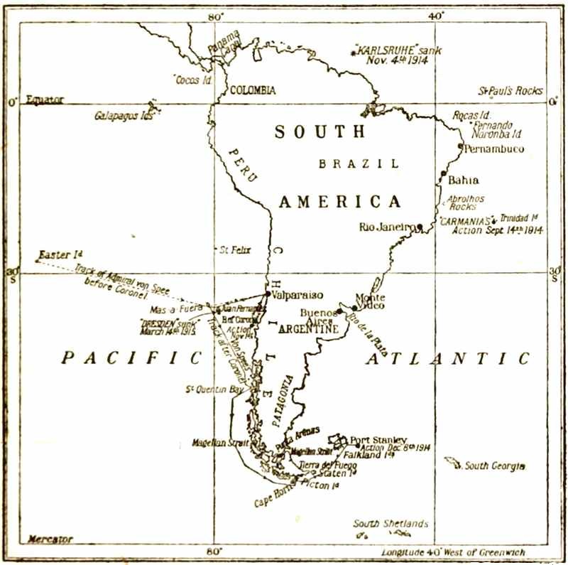 This plain, unvarnished account, so far as is known, is the first attempt that has been made to link with the description of the Falkland Islands battle, fought on December 8th, 1914, the events leading up to that engagement.