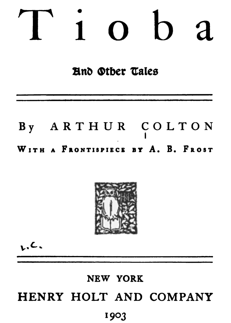 The Project Gutenberg EBook of Tioba and Other Tales, by Arthur Colton This eBook is for the use of anyone anywhere in the United States and most other parts of the world at no cost and with almost no restrictions whatsoever. You may copy it, give it away or re-use it under the terms of the Project Gutenberg License included with this eBook or online at www.gutenberg.org. If you are not located in the United States, you'll have to check the laws of the country where you are located before using this ebook. Title: Tioba and Other Tales Author: Arthur Colton Illustrator: A. B. Frost Release Date: October 21, 2015 [EBook #50271] Last Updated: March 12, 2018 Language: English Character set encoding: UTF-8 *** START OF THIS PROJECT GUTENBERG EBOOK TIOBA AND OTHER TALES *** Produced by David Widger from page images generously provided by Google Books